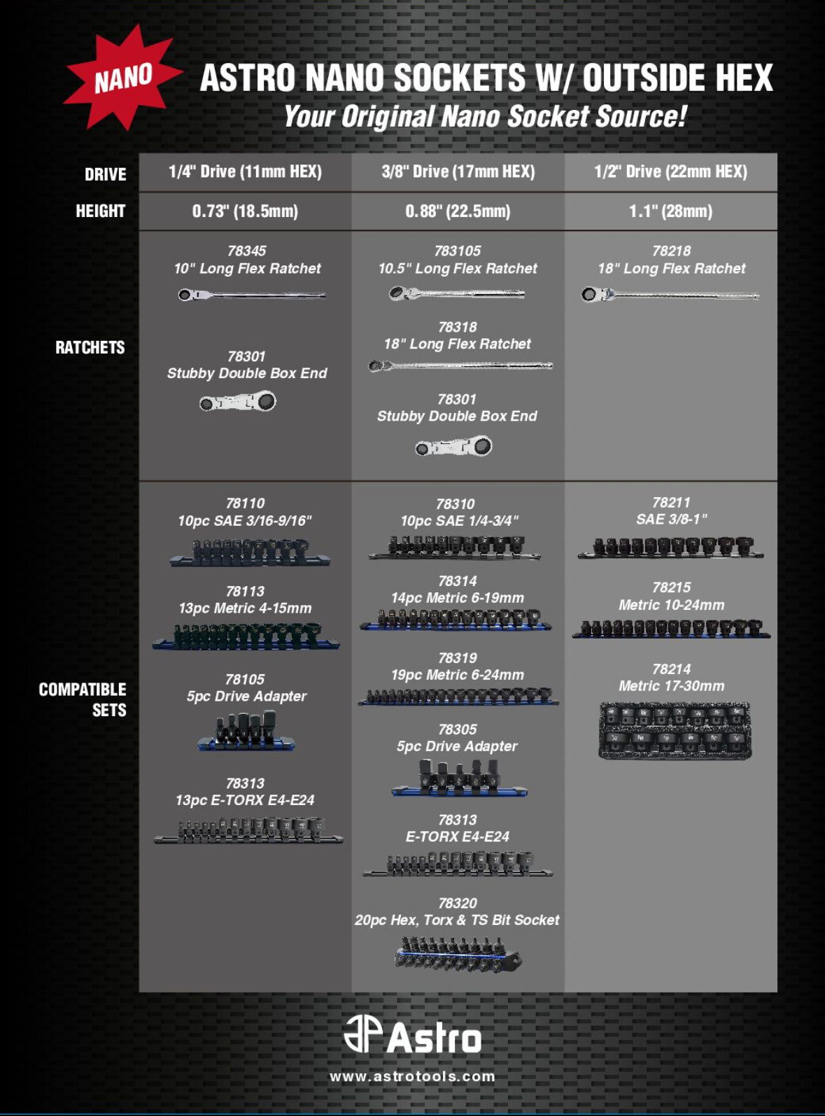 • All sockets feature a 17mm outside hex for increased access when used with a wrench.