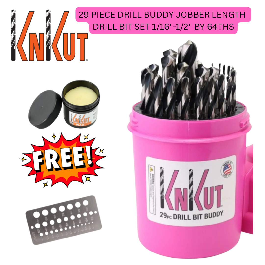 PINK KNKUT 29 PIECE DRILL BUDDY JOBBER LENGTH DRILL BIT SET 1/16"-1/2" BY 64THS
