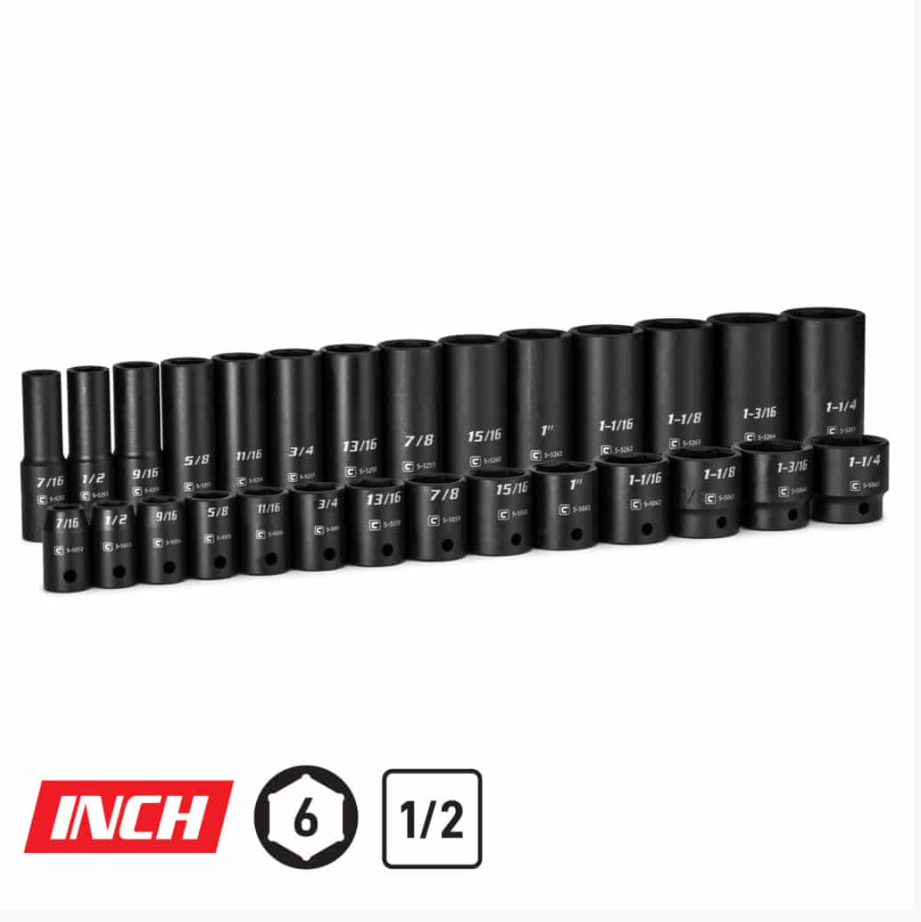 Capri Tools 1/2 in. Drive Shallow and Deep Impact Socket Set, SAE, 9/16 to 1-1/4 in., 28-Piece