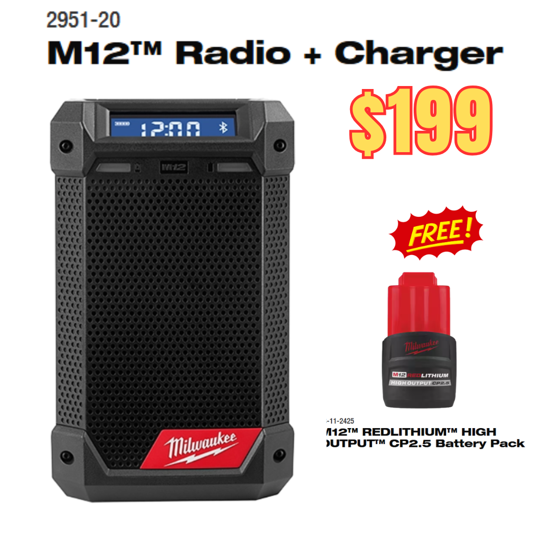 M12 Radio + Charger with Free CP2.5 Battery Pack