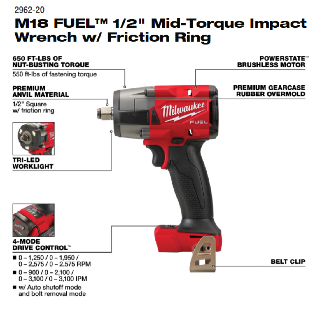 M18 FUEL™ 1/2" Mid-Torque Impact Wrench w/ Friction Ring